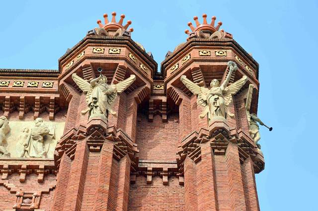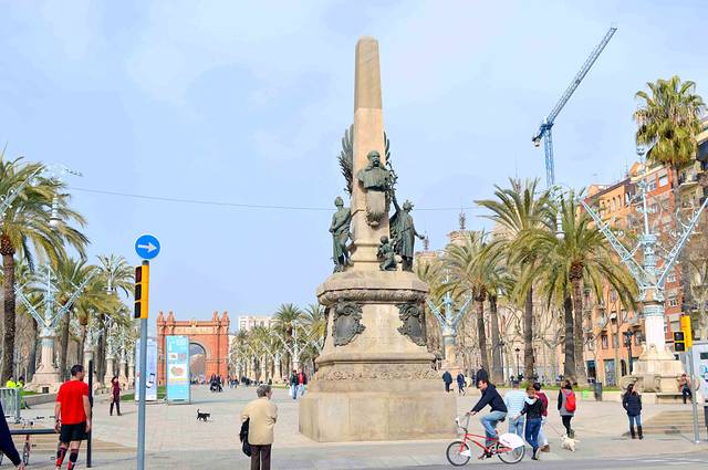 巴塞罗那凯旋门地处通往城堡公园的Passeig de Lluís Companys宽阔大道的尽头。