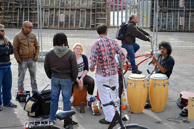 街头艺人也在做准备。