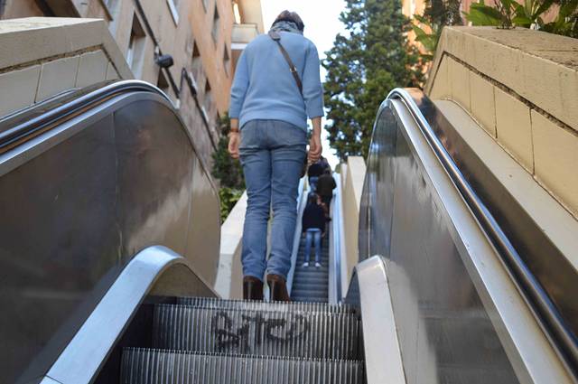 你可以乘坐地铁3号线在Vallcarca站下车,按站内地图步行几分钟即可到达山脚。看第一张照片觉得山坡很陡,好像有30多度斜角。还好只有这一小段需要攀爬,其他路段有几部电梯接力送你上山。还是挺方便的。
