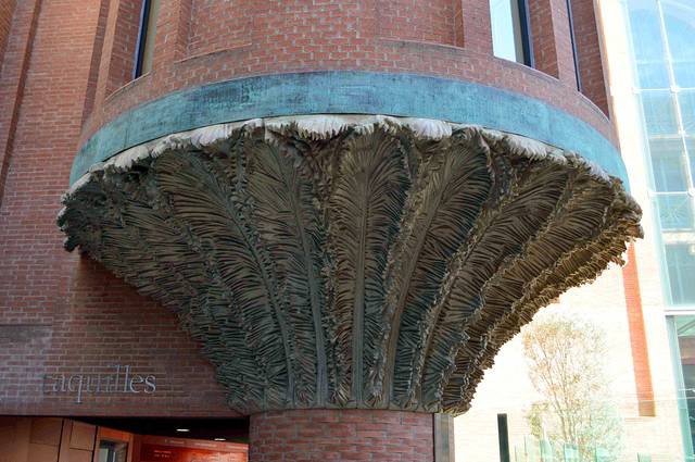 正面骷髅般的阳台是她的招牌。而柱子又仿佛是鱼骨。