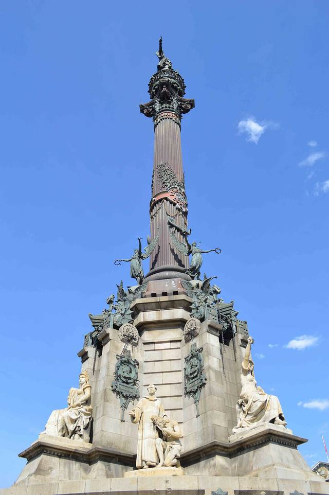 哥伦布纪念塔在兰布拉大街尽头。当年意大利人哥伦布就是从巴塞罗那出航,发现了美洲大陆。好多人不知道可以登塔参观。4欧元电梯费远眺城市美景,值不值各有各见解。