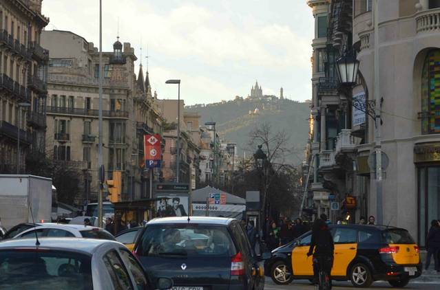 远处 TIBIDABO 山上的 TIBIDABO 教堂。当我还在飞机上的时候就能看到它。今天我徒步爬上了这座地处540米高的山顶教堂。为什么不坐缆车要用脚走?改天向你叙述。