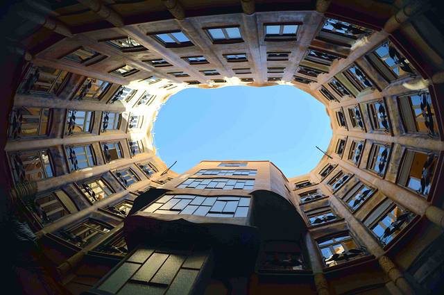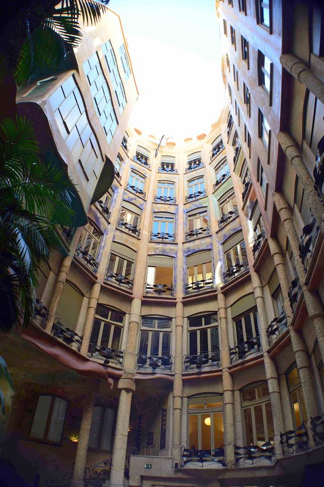 这个建筑离高迪的“米拉之家”只有一个街区,我看到它的外形很有意思,于是探头张望了一下。看门的老先生向我招手,示意我可以进去看。我猜想他一个人可能也无聊。