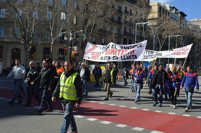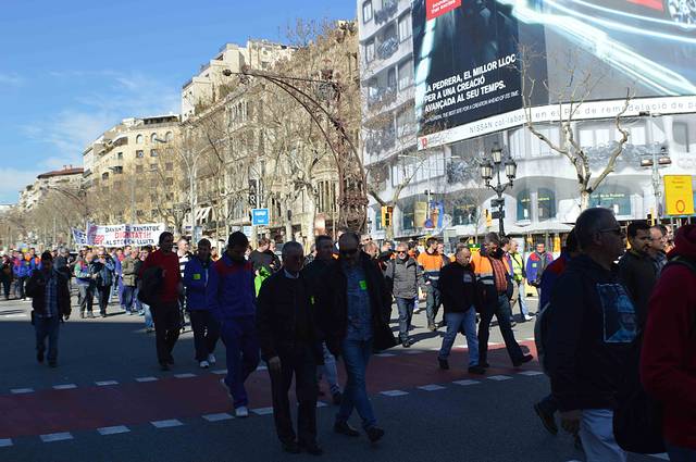 过马路是碰上游行。在巴塞呆久了常常可以看到这种情景。西班牙经济不景气,不得不执行紧缩政策。不过在市区景点充满了各国游客,倒看不出多少衰退迹象。