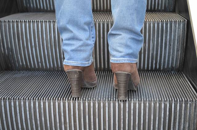 这位大婶做足了准备,穿着10公分高跟鞋爬山来了。