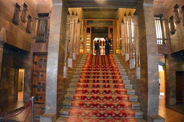 参观完宽敞的地下空间,让我们沿着红色的地毯往上走,参观奎尔宫的主体。