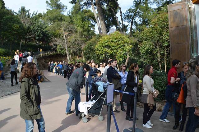 看到排队的人很多,那天并没有进去,打算在网上订票后再说。碰巧第二天和一位澳洲朋友见面,他在巴塞罗那生活了20年,中间做过4年英语导游,说可以带我参观。这可要比语音器强不知多少倍啦。到时候把圣家堂TEMPLE EXPIATORI DE LA SAGRADA FAMILIA,桂尔宫PALAU GÜELL,桂尔公园PARK GÜELL一起介绍。3个均是世界遗产
