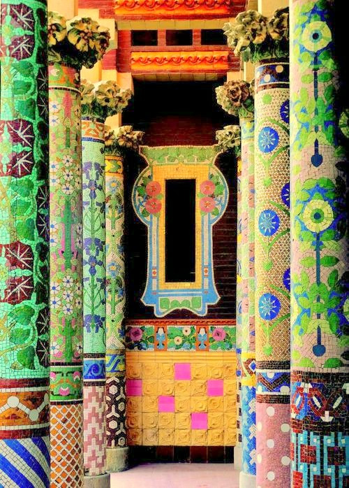 之前在一本画册中看到过这一组14根立柱,每根立柱都饰有不同图案和色彩的马赛克,当时甚是惊艳。不过今次参观,这个临街阳台不开放,所以只好远远地拍一张。好在“科技发达”,我从网上下载了2张近照供大家欣赏。