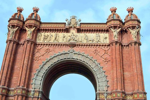 “凯旋门”作为1888年世界博览会的主要入口而兴建,用红砖砌筑,属于摩尔复兴风格。前面的门楣上雕刻有 "Barcelona rep les nacions"(“巴塞罗那欢迎各国”)。凯旋门的顶端装饰着西班牙其他49个省的省徽。