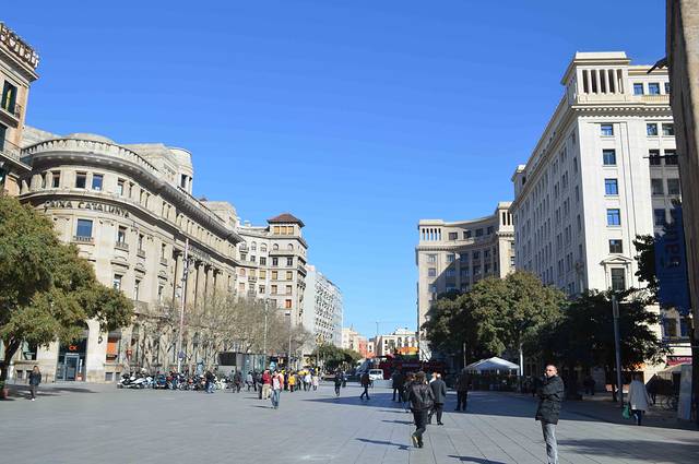 加泰罗尼亚广场位于哥特区(老城)与Eixample区(新城,其实也不新了)的交界处。是众多交通的起始点(比如机场班车)。因此游客认识巴塞罗那往往从这里开始。广场有50000平方米,许多雕塑和喷水池,是约会的好地点。