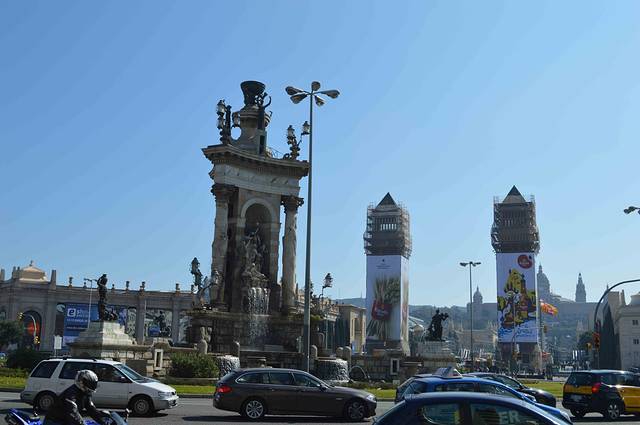 据说西班牙的每个大城市都有西班牙广场,甚至是对西班牙“恨之入骨”的巴塞罗纳。这是巴塞罗纳的西班牙广场。首先是 Les Arenes bullring - 原先巴塞的斗牛场,现在斗牛在整个加泰罗尼亚被禁止了。说是动物保护,我想原因应该是“西班牙的产物”,凡是西班牙的,加泰恨不得都禁止。
