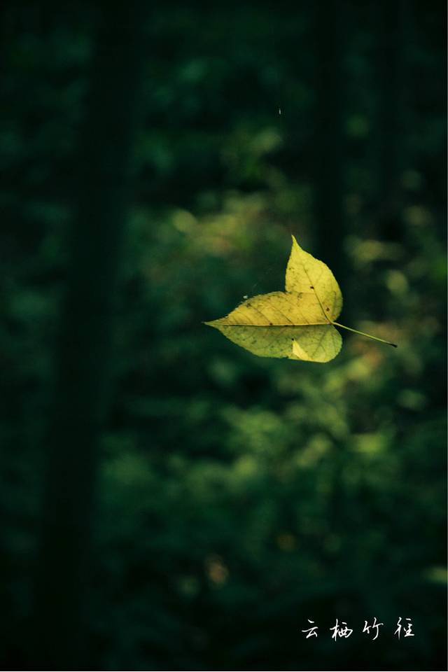 一片被蜘蛛丝挂住的树叶。