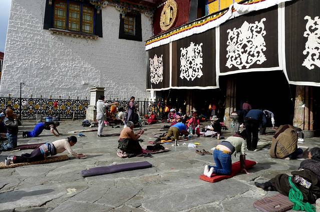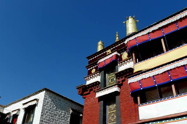 Tips: 在西藏请一定尊重当地的风俗和信仰,进入寺庙和转经请一定按顺时针方向,不要用手指去指佛像,如果需要指示,可以用整个手掌,做出尊敬的手势。在佛殿中请不要戴帽子和墨镜,但带口罩是可以接受的。