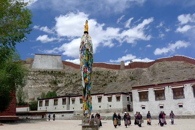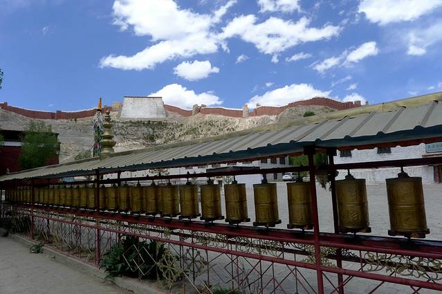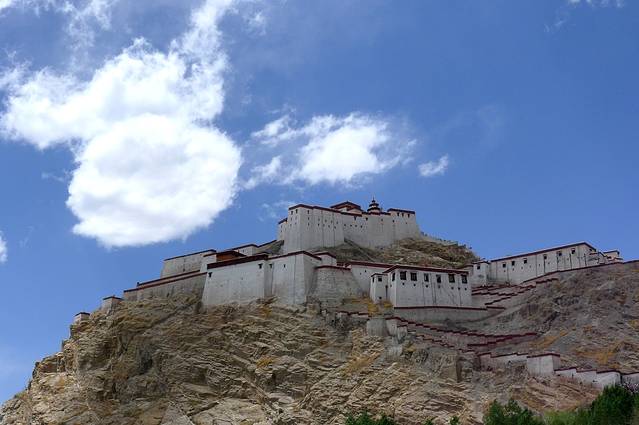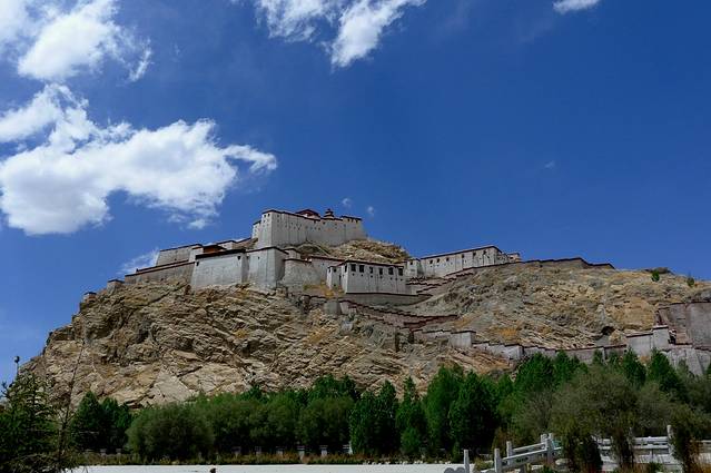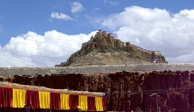 宗山城堡,又一个因为《红河谷》而为世人熟知的地方。海拔4000米的江孜地势平坦,因而只有约100米高的宗山城堡看起来分外雄伟。110年前,江孜军民与白居寺僧侣在这里英勇抵抗英军侵略,死守城堡3个月,最后弹尽粮绝,所有勇士宁死不屈跳崖殉国。