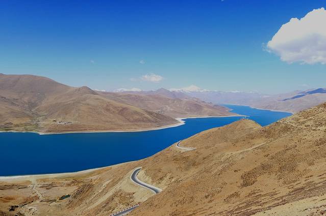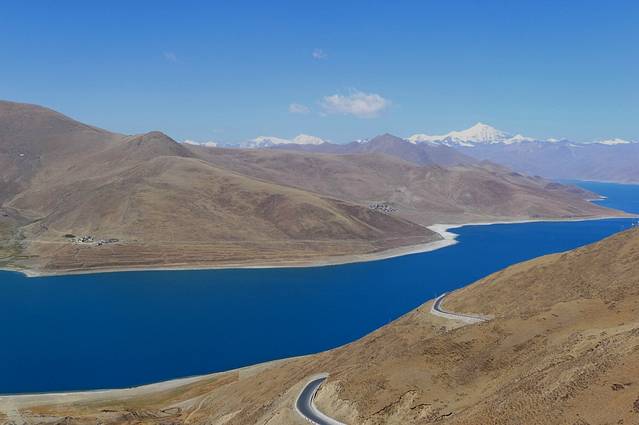 羊卓雍措是西藏三大圣湖之一,它字面上的意思是“上面牧场的碧玉之湖”。而在西藏人心目中,羊卓雍措是神女散落的绿松石耳坠,因为无论你在哪个角度,都不能看到她的全貌。