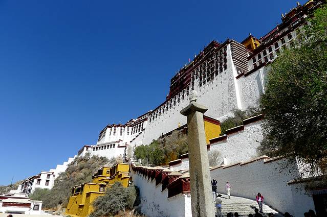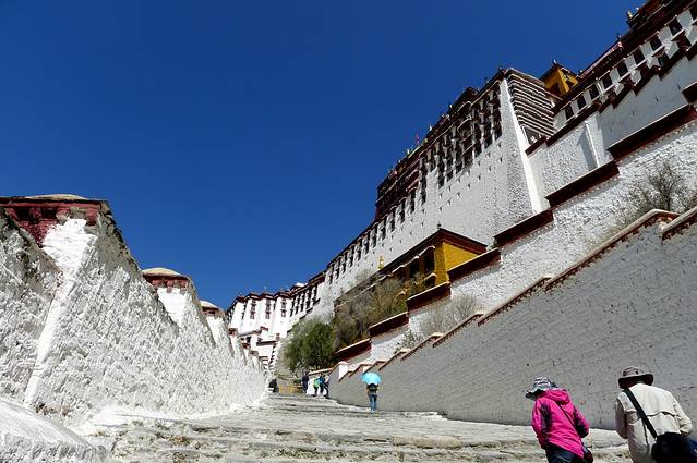 我们拿到的预约时间是10:40,但工作人员告诉我们09:40就可以从布达拉宫的山脚下开始向上爬,10:40前到达售票处就行了。今天遇到一个不太靠谱的出租车司机,绕了很远路不说,还把我们放到了跟转经的人们行进的方向相反的入口,害我们心情很忐忑。