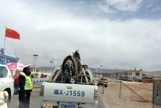 去往纳木错,一路都在4000米以上的高原行驶,寒风刺骨。看看这匹马的装备就知道有多冷了。