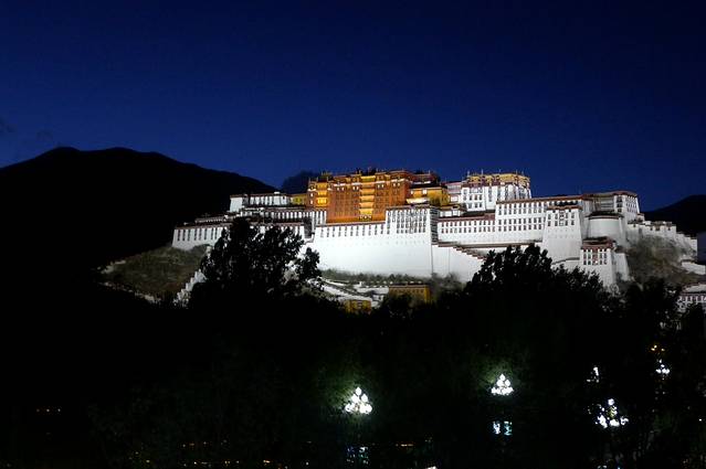 很快,太阳落山了,布达拉宫的夜景,神圣且辉煌。