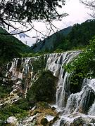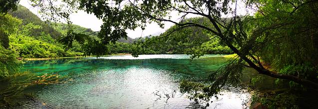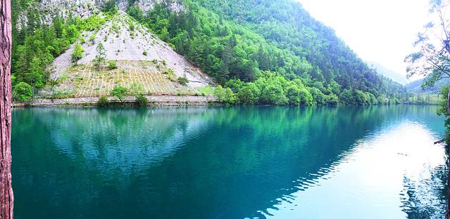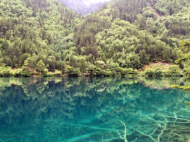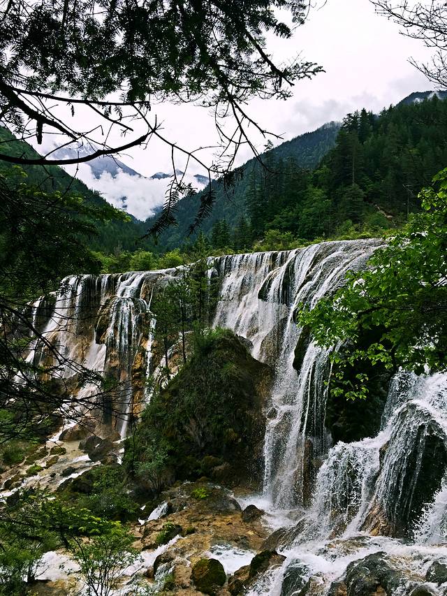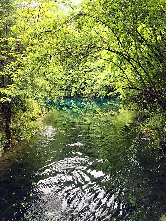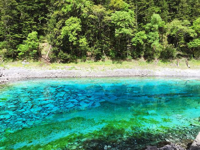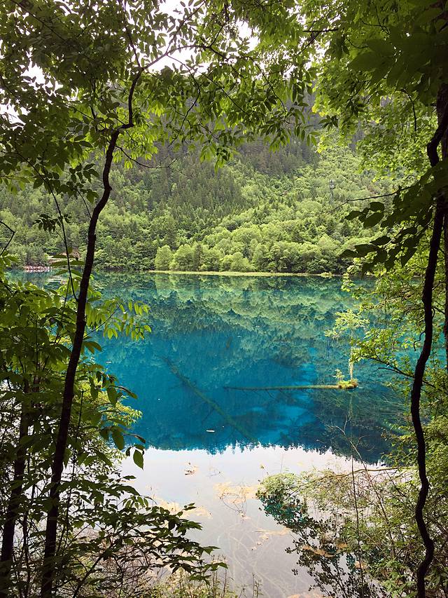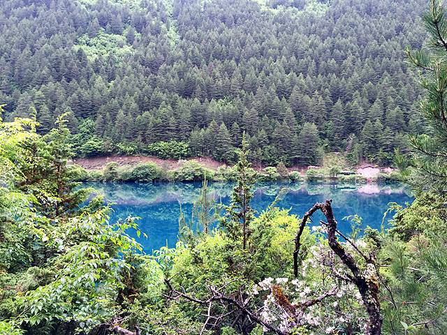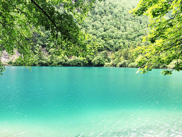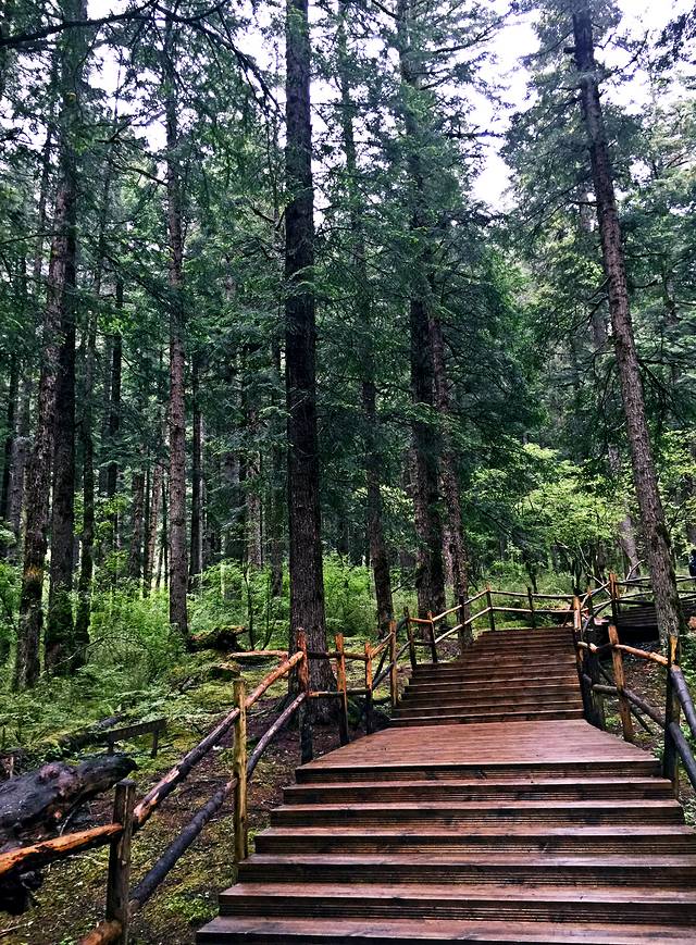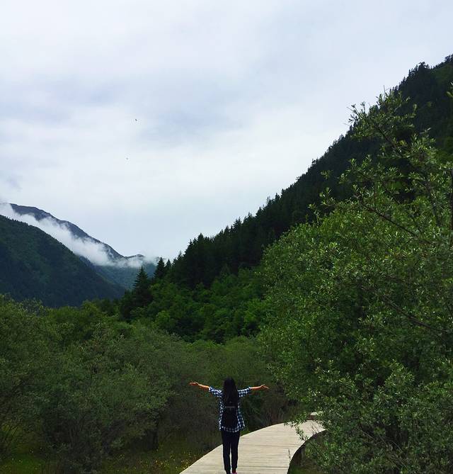第二天我们又起一大早在酒店去沟口途中经过的农业银行自助售票点购票,于是基本上应该是开门后第一个入沟的,这里我们作出了一个错误的选择,坐车到分岔口处就下车了,当时是打算步行走完左沟的。这一天天气放晴,一早紫外线就非常强了,当我们享受着跟昨日不同的景色时,不知不觉走了快三公里的公路了,依然没有看到步行栈道(好在景区在左沟的发车时间比右沟晚,要九点以后才会通车,我们进沟太早所以暂时没有什么危险),我察觉出不对后重新摸索了一下地图的符号,发现这里再往前四公里都是没有栈道的,于是我坚持返程(沟内公路非常窄,拐弯处两辆巴士都不能错开需要一辆辆过十分危险,公路上看风景又一般,所以公路是坚决不能步行的)。这个决定事后发现是正确的,因为后来坐车上到左沟最高点后才得知,这边由于景点少景点间距离太远,步行栈道只能看到森林,所以很少有人走,于是年久失修所以封闭了。非常遗憾不能走这边纯粹的森林,所以上午的时间就这样在等车里浪费掉了(因为人多拥挤TT)于是我们返回了右沟比较喜欢的位置,在森林内栈道悠闲得走走停停,偶尔阳光暴晒刺眼,偶尔打几个雷下一会儿小阵雨,我们又享受到跟昨日不同的两种气候风貌。其实昨日的徒步已经导致浑身酸痛,每个阶梯都很煎熬的地步,膝盖支不住腿钻心的酸痛和发抖,所以我们也不急了,切换成悠闲漫步模式,路过寨子吃一吃看一看买一买,让每一寸土地都留下自己的足迹后,浑身上下足够酸爽后,满意的返程了。我想这应该就是所谓旅行的意义!