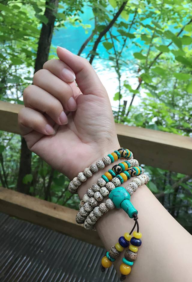 九寨沟白天我们是自备干粮,偶尔在景点喝点热饮。景点快餐一份二十,咖啡奶茶5-10元。沟内的两处主要藏民寨景点也基本就是购物点,不过价格不同于印象中的景区,非常实惠,应该说差不多属于城里地摊一样的价格了,举例:围巾披肩20,羊毛的才50一条,小玩意通通几块钱,青稞糖一盒十元,牦牛肉60一斤(跟普通牛肉一个价,所以据说这价位有可能是马肉),我还在藏民家挑了一串星月菩提手串150,有的藏民说杀杀价100也能拿下,不过喜欢就好,毕竟城里要N张毛爷爷才能买到(提示买者最好能分辨真假,毕竟这玩意也有很多是塑料或木料加工的)总之无需太计较价格都非常实惠看中了敞开买就是了。