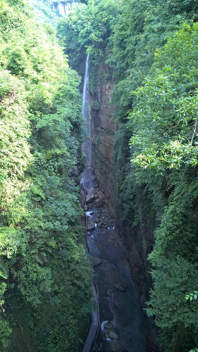 云龙河地缝是一道地质奇观,它是一百零八公里恩施大峡谷的一部分,地缝全长约3.8公里,断面呈深“U”型,最深处超过100米,最窄处不到10米。恩施大峡谷古称沐抚大峡谷,是典型的喀斯特地貌。不同于因为地壳板块运动而形成的东非大裂谷;也不同于因为流水冲刷切割而成科罗拉多大峡谷,云龙河地缝是水溶蚀而成的。立陡立陡的峭壁真像是走进了整个山谷的缝隙中一样,人不是很多,所以慢慢悠悠一边欣赏风景一边就下去了,如果下雨天的话,大家一定要注意安全啊,木质的台阶还是有点滑的。下面的水从石头上流过,还有各种飞瀑,领略大自然的美。大约1个半小时逛完地缝,从地缝上来就是大峡谷上下索道出入口,个人没有坐索道(上去110,下来90)。就直接上大巴车去七星寨景区入口。