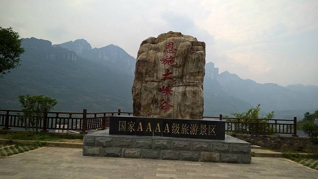 恩施大峡谷的清晨有些凉快,空气很好。早上8点就起床,吃完早餐,带上水和2块压缩饼,便赶往大峡谷游客中心。到网上取票窗口取完票,过检票站,坐上景区大巴车,景区巴士每人30元,这是必须要坐的(游客中心到景区入口有很远)。景区分两大块,云龙地缝景区和七星寨景区。先游地缝,大概10分钟后到达云龙河地缝景区入口。