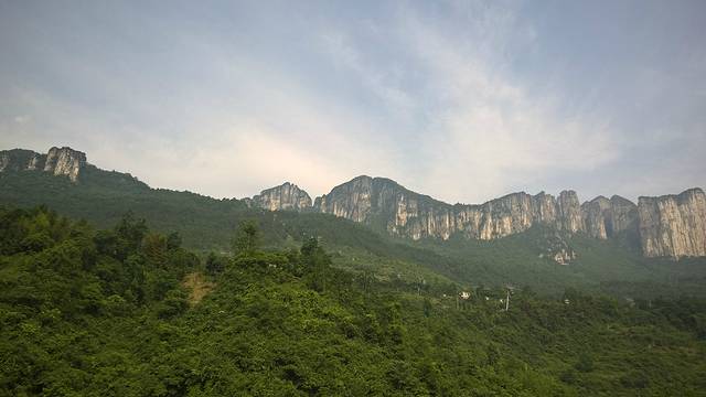 随着船一路前行,就到了武洛钟离山, 武洛钟离山在隔河岩水库中的一座岛上,是巴人先祖的发祥地,虽然人工雕凿的气息过重,但还是很有看头的,站在山头看青山环聚,清江如带飘然东去,美不胜收。时间不知不觉就到了下午1点半,然后在武洛钟离山上吃过中午饭,点了一盘清江鱼和一盘土豆片,清江鱼真的很好吃,很鲜。由于要回宜昌市赶18点的火车,下了山就直接坐上了最早返回的游船。仙人寨这个景点就没有去了。下午4点钟坐上了返回长阳的中巴,然后在长阳汽车站转回宜昌东火车站。很幸运的是刚好赶上了我的下一趟火车。宜昌东到恩施。