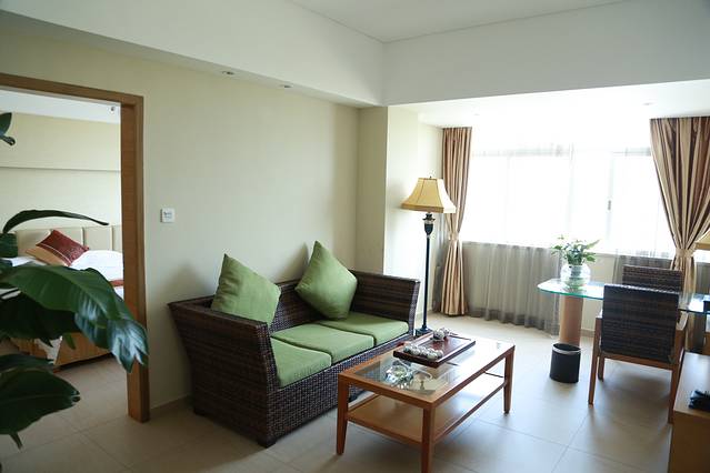 进入飞沙滩旅游景区,入住岛上的悦海嘉州海岛度假酒店,因为是淡季每晚700多含双早的套房,如果是周末价格得翻一倍,节假日估计得翻一倍还多,现在入住感觉挺划算的,因为上川岛飞沙滩旅游景区开发比较早,其他酒店设施相对比较陈旧,这家酒店硬件条件个人看来是岛上最好的。