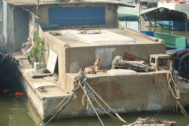 抵达上川岛,祥和的小镇码头,悠闲晒太阳的大黄。
