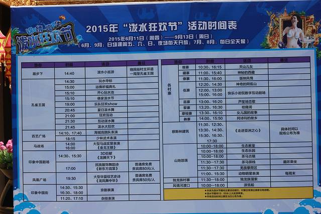 目前锦绣中华处于泼水节期间,晚上看完大型演出之后泼水节就开始了,自备泳衣和泼水盆,在炎热的夏天,这是一个绝佳的解凉办法哦!