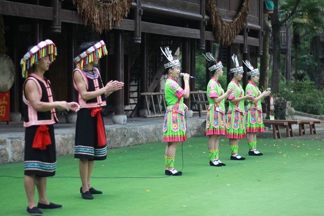 进园右转,就是拥有众多少数民族不同表演的集中区域,据说所有的演员都是当地人,所以你既可看到异域风情的俄罗斯美女,还可以看到黝黑的佤族人,另外还有说着不太标准的普通话的黎族当地人等等。很多中国非物质文化遗产的继承人也在民俗村。