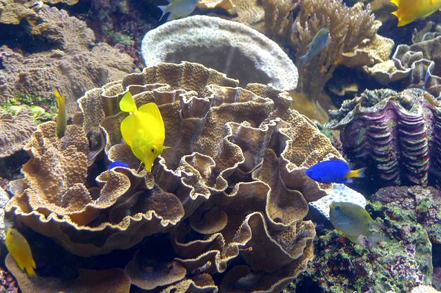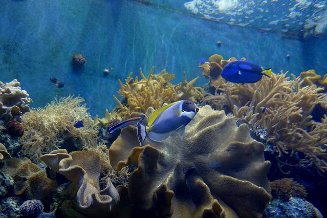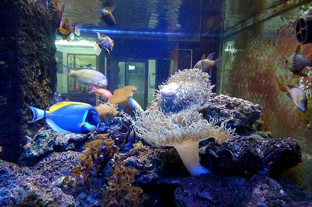 有漂亮的热带鱼和珊瑚的水族箱总是能轻易吸引人们的视线。