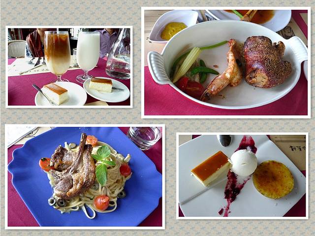 羊奶咖啡,鲜羊奶,都是牧场特色。猪手是大爱,既有脆香的口感,又保持了鲜嫩。小羊排海鲜面,连不吃羊肉的妈妈都觉得很不错,甜品的焦糖苹果更是妈妈的最爱。