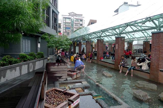 礁溪乡到处都是露天温泉,这些温泉全部都是免费对公众开放的。我们去这天,有义工带了台北的残障人士在这里体验,整个公园都是温情满满。一位义工大叔看我们在旁边围观,便热心地劝爸爸去泡一泡。结果爸爸泡温泉之余,也跟这位义工大叔聊得很开心。这一段也成为爸爸关于台湾最美好的记忆之一。