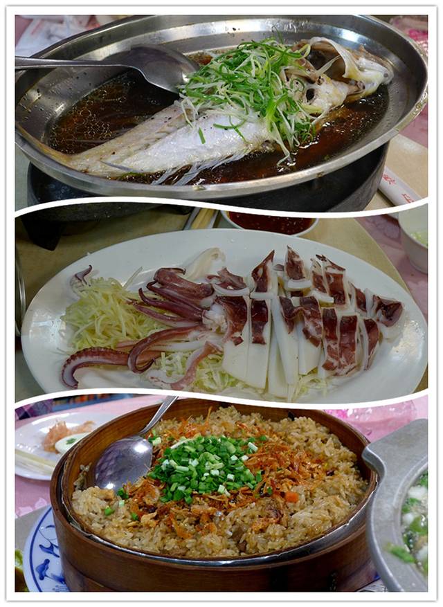 苏澳港的富美活海鲜,是当地人经常光顾的地方。食物一上桌,就让人感觉很有食欲。清脆鲜嫩的山苏,是蕨类健康食品;海鲜锅特别适合这样的阴雨天,让人感觉暖到心底;老板的私家黑糖甜品加上银耳莲子炖品,实在是绝顶享受。