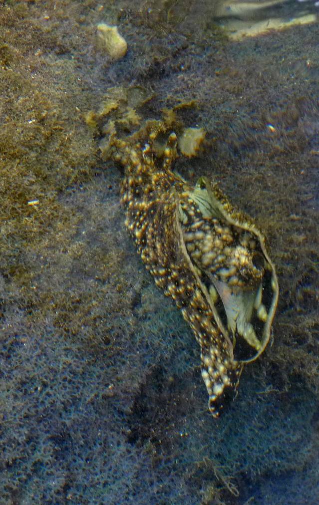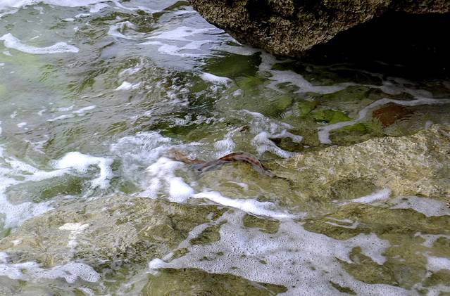 忽然,胡导和田爸爸发现一条海鳗,我们正想去来个亲密接触,胡导的一声“会咬人”,吓得我们赶紧逃跑。