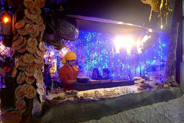 这家烤生蚝的店布置得很不错,店员的着装也很有趣。