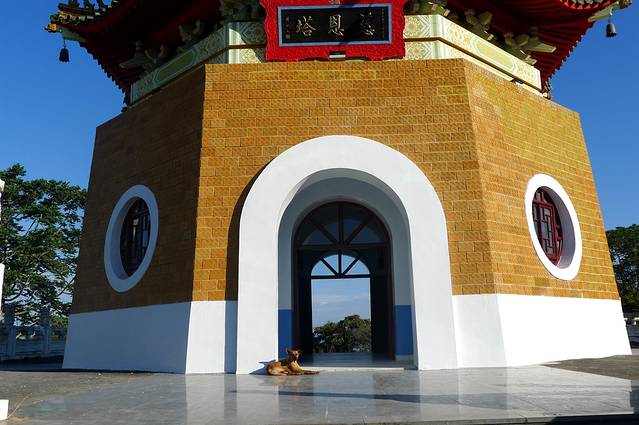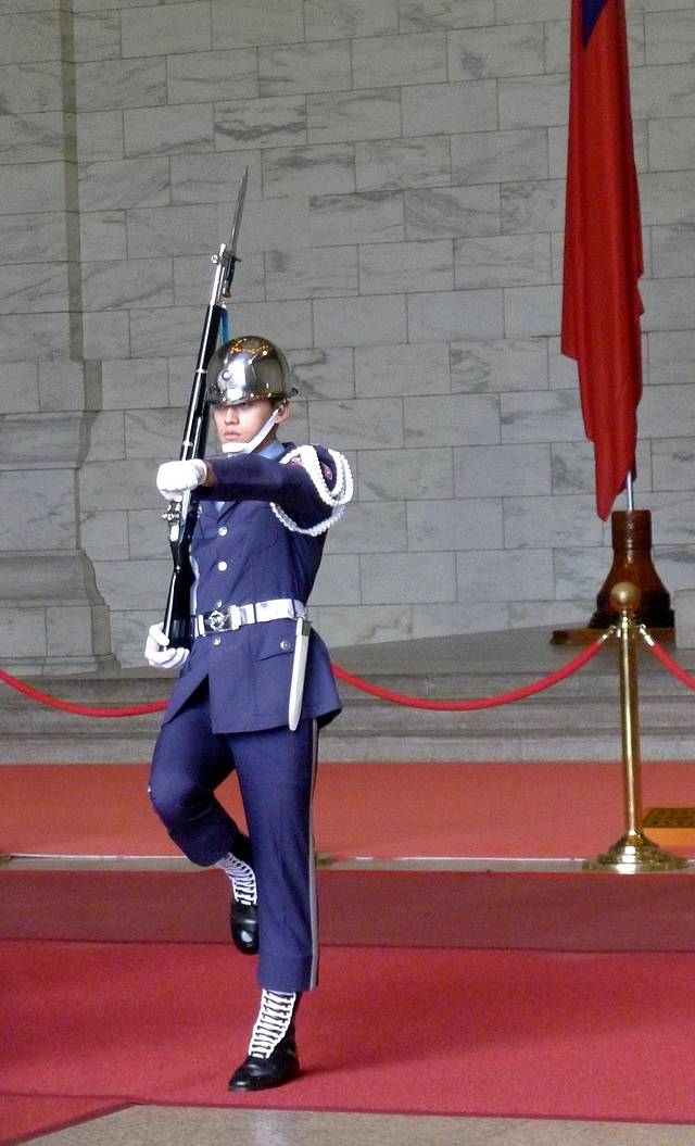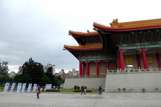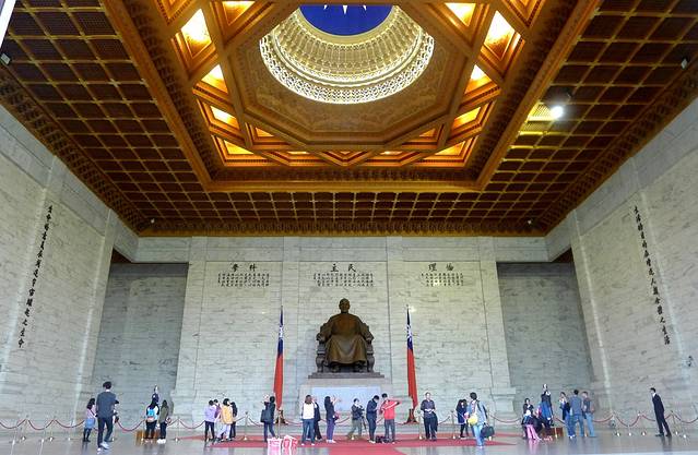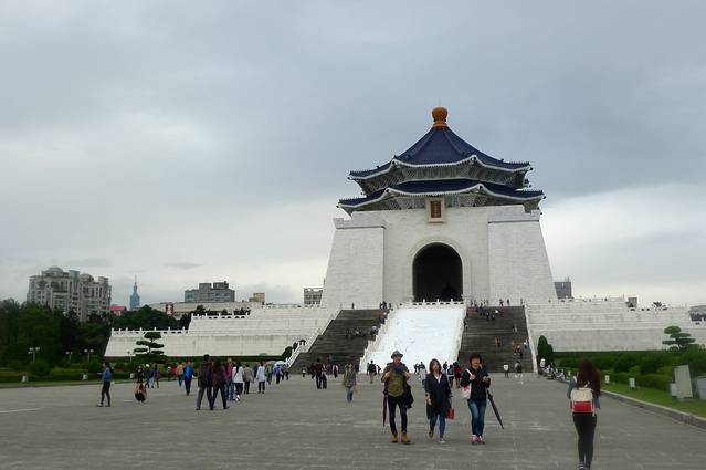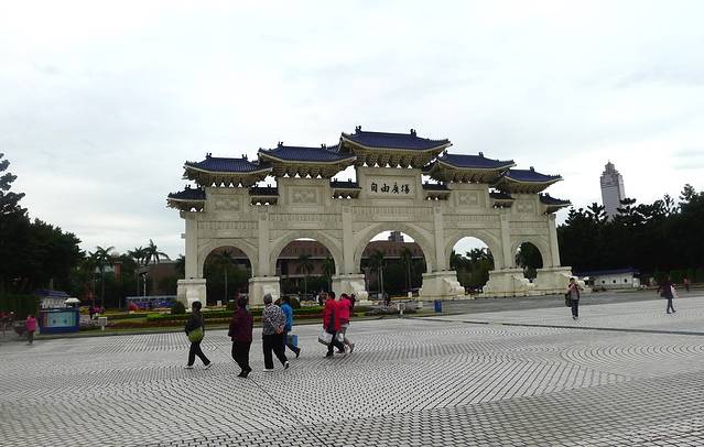 吃完面时间已经不早了,匆匆赶往此行的最后一站,蓝色线上的自由广场和中正纪念堂。胡导说马英九是个软脚蟹,不敢把被换掉的“大中至正”牌匾彻底改回来,留了“自由广场”来讨好绿党。
