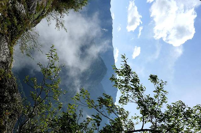 走过吊桥,眼前便是白杨瀑布。从高耸而陡峭的崖壁上垂直泻下的瀑布因目前并非雨季的原因,规模并不是特别大,但还是可以想象在雨水充沛的季节它惊人的声势。