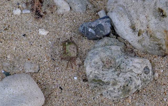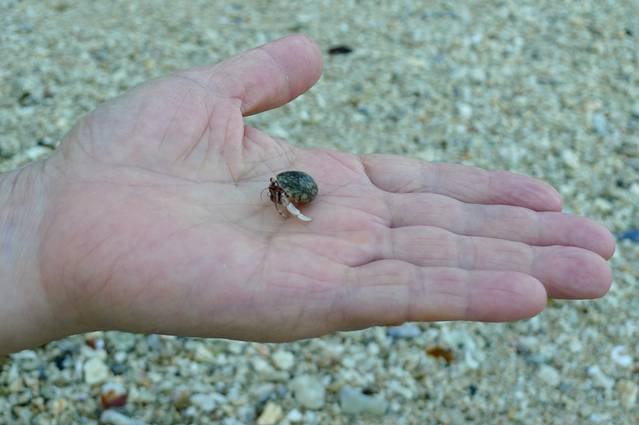 到了海边,已经有早来的人捡到一大堆寄居蟹,我们一起把这些可爱的小生灵放回大海。