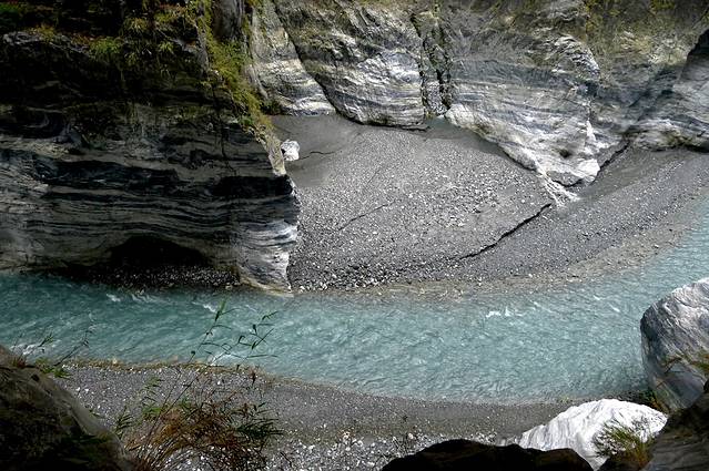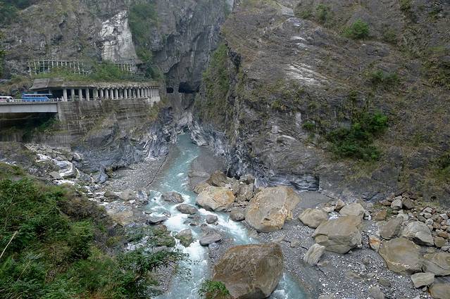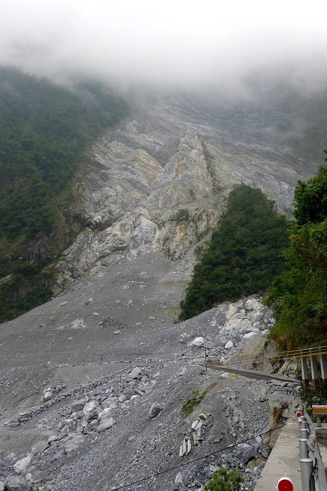 路上看到台湾大地震的滑坡路段。几乎是一整座大理石的山坡就这么全部滑到公路对面的山谷下,触目惊心,直到现在都没有修复。大自然的力量真的很可怕。