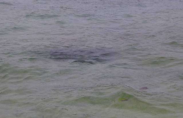 小琉球还是著名的绿蠵龟栖息地,因为这里的绿蠵龟种群巨大,所以很容易看到。它们游动的速度很快,偶尔会抬头呼吸,可惜没有拍到。海水里那团黑黑的阴影就是了,它们都是大个子,但个性温和,不会攻击人。