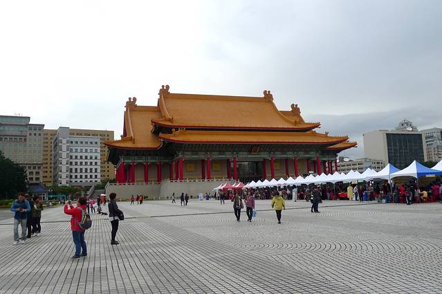 自由广场上除了中正纪念堂,还有“国家”大剧院和音乐厅。我们去这天,音乐厅门口的广场上正在举办特产交流展览,很多地方都在这里做土特产特卖会。