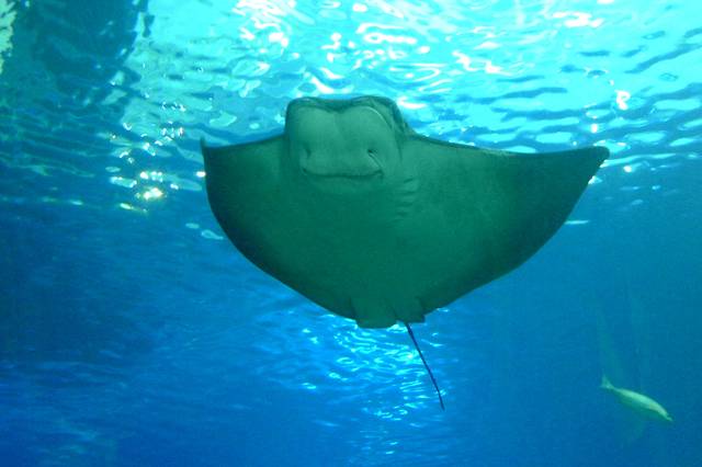《海底总动员》中尼莫的老师——蝠魟最大可以长到1吨重,是珊瑚王国水域的主人。我最喜欢它那始终笑眯眯的模样,非常喜庆的样子。