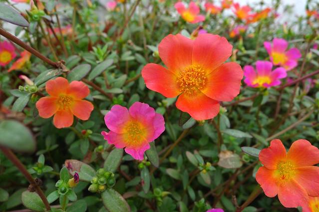我们的饭店和好多人家门口都有盛开的太阳花。花莲的太阳花色彩鲜艳,一般都是单瓣的,跟我们平常看到的复瓣太阳花大不相同,很有特色。