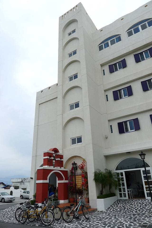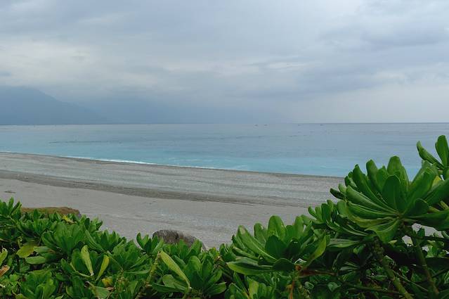 又开了一段,就到达了今天的目的地——花莲的七星潭。我们住的七星潭度假饭店条件很不错,价格也非常合理。走几分钟就可以到达七星潭海滩,饭店是希腊风装修,门口的咖啡厅24小时免费提供饮料,上网和看书的服务,真是很温馨。