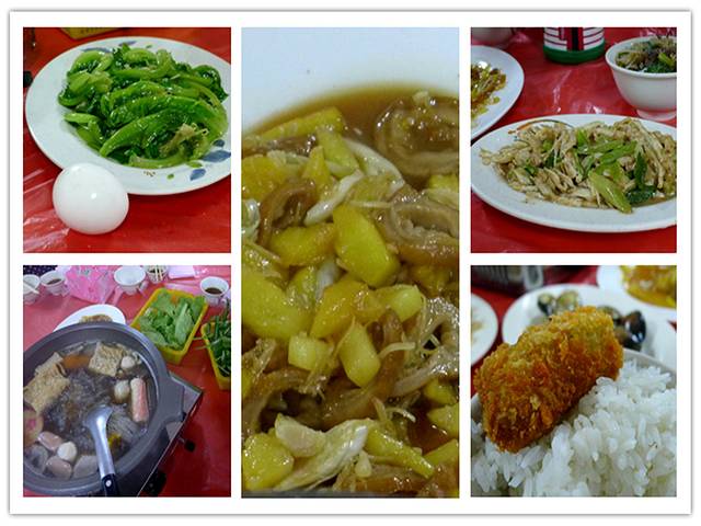 这一顿吃了很多新鲜东西,右上角的鲨鱼肉,味道和外表都挺像鸡肉,鱼排超级好吃,牛肉火锅和冬瓜茶都很不错。个人尤其喜爱她们几婆媳自己做的辣椒酱,还有就是台湾居然把生菜叫做大陆妹……