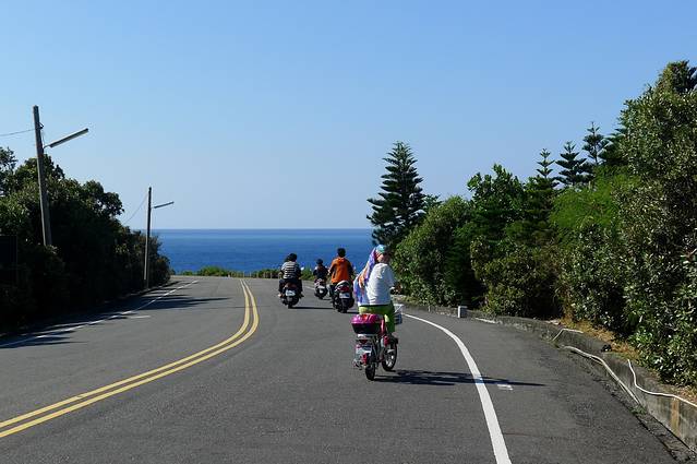 在码头边的店里取到了民宿老板田爸爸帮我们租好的电瓶车和摩托车,就浩浩荡荡往民宿开去。小琉球岛其实还是不小,沿路风光宜人,车道也修得不错,骑车环岛游是不错的选择。我爸妈和小姨不骑车,田爸爸就一路开车送他们。