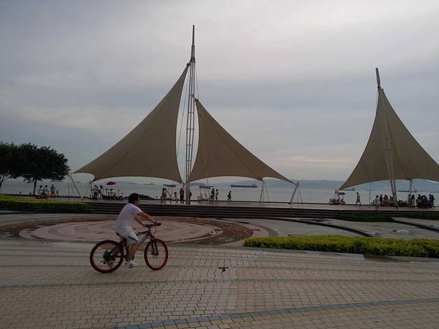 六月份去的,厦门比较热。我们选了四点多出去骑车,原本是在去哪儿网定了租自行车的,后来发现离住的地方有点远,而且住的附近也有租的点,果断退票了。价格其实不贵,无限时间的那种老板说三十刚出发就走错方向,等我们转回正轨的时候刚下沙滩,雷阵雨就来了。还好来得快去得也快,回酒店休息了一会儿继续骑行