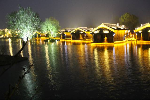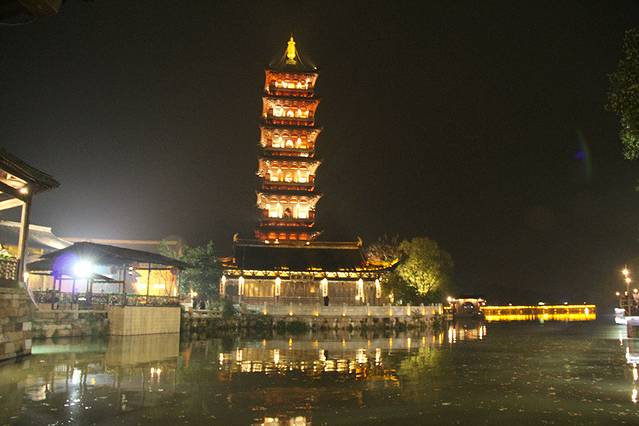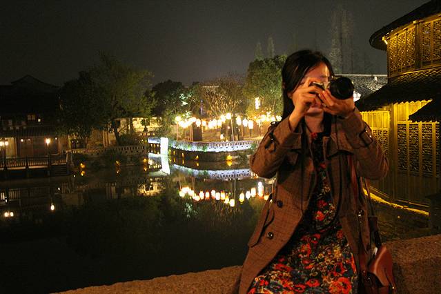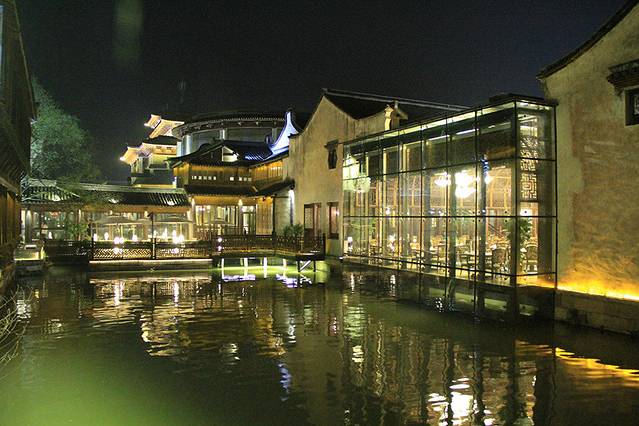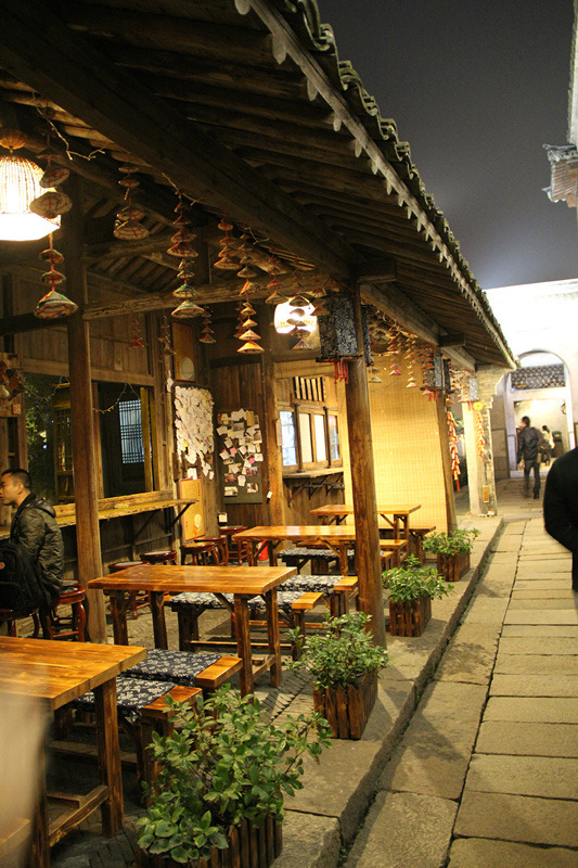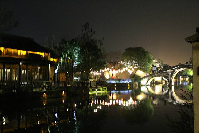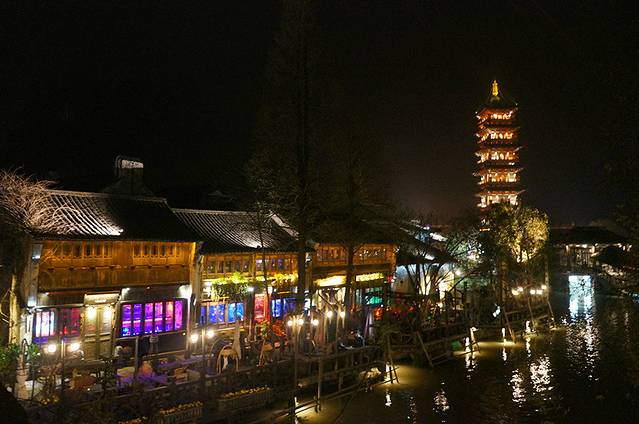 一下子,天黑了,拍不出好看的油菜花了,我们走着田间小道,前面后面多没有人,略害怕,指引我们的也是有前方的宝塔。很好不容易不在游离在西栅的外围,走到了酒吧街。我不明白为什么古色古香的这些古镇里都充斥着求艳遇的酒吧。这里的酒吧里还有菲律宾的酒吧女穿的很sexy在台上唱歌跳舞,让我觉得略模糊了古镇的风韵。倒是一些慢摇的酒吧,还能从歌手的嗓音中感受到夜色中古镇的感觉。